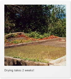 Junior explains that after harvest, the green berries are spread out on a concrete drying pad — known as the BBQ — to sun dry for two weeks. During this time, the color of the berries changes from green to a rich, dark brown. After drying is complete, the berries are sold to a collector, who then sells them to the processors and shippers for international export.