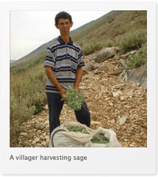 To better understand sage, it helps to get a feel for the rough and rugged terrain in which it is grown. Albania is a small country - about the size of Maryland - that is made up of vast mountain ranges and sizeable fertile valleys. Its weather is temperate with mild winters and warm summers. As a result, it has one of the most diverse wild vegetative plant populations in all of Europe. On this trip, I learned that more than 250 botanical herbs naturally grow here. Sage, known in Albania as "sheradela," has been growing in the hill country for thousands of years. It grows best in elevations of 100 - 500 meters (300 - 1,500 feet).